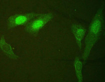 Immunofluorescence: U2OS cells were blocked with 10% goat serum and then stained with ARG59311 anti-Smoothelin antibody (green) at 2 µg/ml dilution, overnight at 4°C.