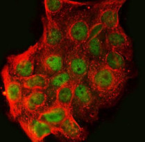 Immunofluorescence: A431 stained with ARG45216 anti-SnoN / SNO antibody at 5 ug/ml dilution.