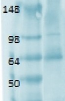 | 特异性 | Detects ~97kDa, non-glycosylated version at 68kDa. Other minor bands associated with hNIS at 160kDa, and degradation products at ~30 kDa, and ~15kDa. |