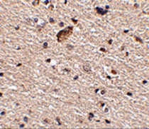 Immunohistochemistry: Human brain tissue stained with ARG56156 anti-Spred 1 antibody at 2.5 µg/ml dilution.