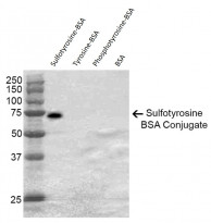 特异性 | Specific for sulfated tyrosine residues on various proteins. Does not detect free Sulfotyrosine. Does not cross-react with phosphotyrosine. |