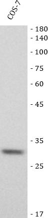 ARG45291 anti-Surf1 antibody WB image Western blot: COS-7 stained with ARG45291 anti-Surf1 antibody at 0.5 μg/ml dilution.