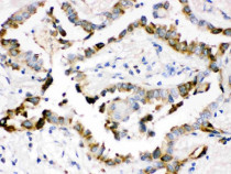 Immunohistochemistry: Paraffin-embedded Human lung cancer tissue stained with ARG42955 anti-Surfactant protein D antibody.