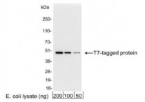 | 抗原 | T7 (MASMTGGQQMG) conjugated to KLH. This sequence was derived from the T7 major capsid protein of the T7 phage. Antibody was isolated by affinity chromatography with the peptide immobilized on solid support. |