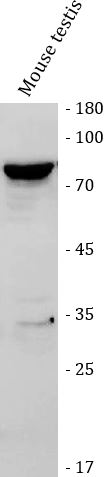 Western blot: Mouse testis stained with ARG45961 anti-TAF6 antibody at 0.5 μg/ml dilution.