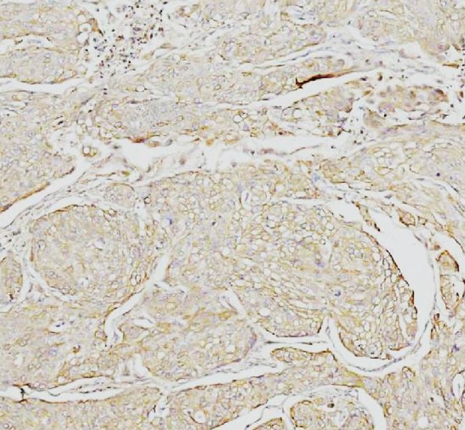 Immunohistochemistry: Human cervix squamous cell carcinoma stained with ARG45566 anti-TAS2R10 antibody at 2 μg/ml dilution.