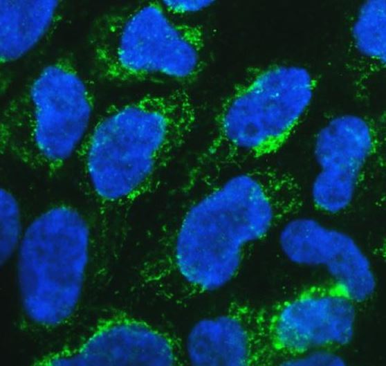 Immunofluorescence: A431 cell stained with ARG45137 anti-TFAM antibody at 2 ug/ml dilution.
