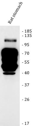 Western blot: Rat stomach stained with ARG45250 anti-TIGD1 / EEYORE antibody at 0.5 μg/ml dilution.