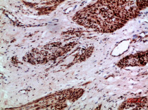 Immunohistochemistry: Paraffin-embedded Human cervical cancer stained with ARG66408 anti-TMPO / Lap2 antibody at 1:200 dilution.