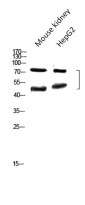 Western blot: Mouse kidney and HepG2 lysates stained with ARG66408 anti-TMPO / Lap2 antibody at 1:800 dilution.