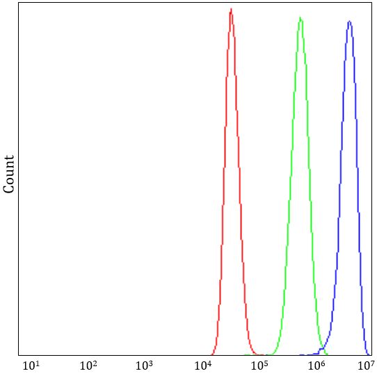 Flow Cytometry: MCF-7 stained with ARG45254 anti-TMPRSS13 antibody at 1 µg/10^6 cells dilution.