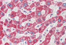 Immunohistochemistry: Paraffin-embedded Human liver tissue. Antigen Retrieval: Steam tissue section in Citrate buffer (pH 6.0). The tissue section was stained with ARG63174 anti-TMPRSS5 / Spinesin antibody at 5 µg/ml dilution followed by AP-staining.