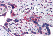 Immunohistochemistry: Paraffin-embedded Human placenta tissue. Antigen Retrieval: Steam tissue section in Citrate buffer (pH 6.0). The tissue section was stained with ARG63643 anti-TMX1 / TXNDC1 antibody at 3.75 µg/ml dilution followed by AP-staining.