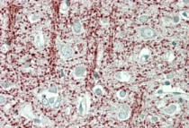 Immunohistochemistry: Paraffin-embedded Human cerebral cortex (steamed antigen retrieval with citrate buffer pH 6.0) stained with ARG65293 anti-TPPP / p25 antibody at 3.8 µg/ml dilution followed by AP-staining.