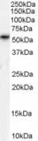 Western Blot: Human Testis lysate (35 µg protein in RIPA buffer) stained with ARG64028 anti-TPTE / PTEN2 antibody at 1 µg/ml dilution.