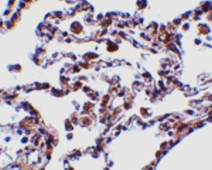 Immunohistochemistry: Human lung stained with ARG46089 anti-TRAF3IP2 antibody.