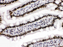 Immunohistochemistry: Paraffin-embedded Mouse intestine tissue stained with ARG40934 anti-TRIM28 / KAP1 antibody.