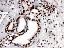Immunohistochemistry: Paraffin-embedded Human mammary cancer tissue stained with ARG40934 anti-TRIM28 / KAP1 antibody.