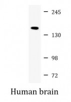 Western blot: 35 µg of Human brain lysate stained with ARG40781 anti-TRPM8 antibody at 1:1000 dilution.