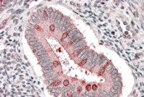 Immunohistochemistry: Paraffin embedded Human Uterus. (Steamed antigen retrieval with citrate buffer pH 6) stained with ARG63935 anti-TSC1 / Hamartin antibody at 3.8 µg/ml dilution followed by AP-staining.