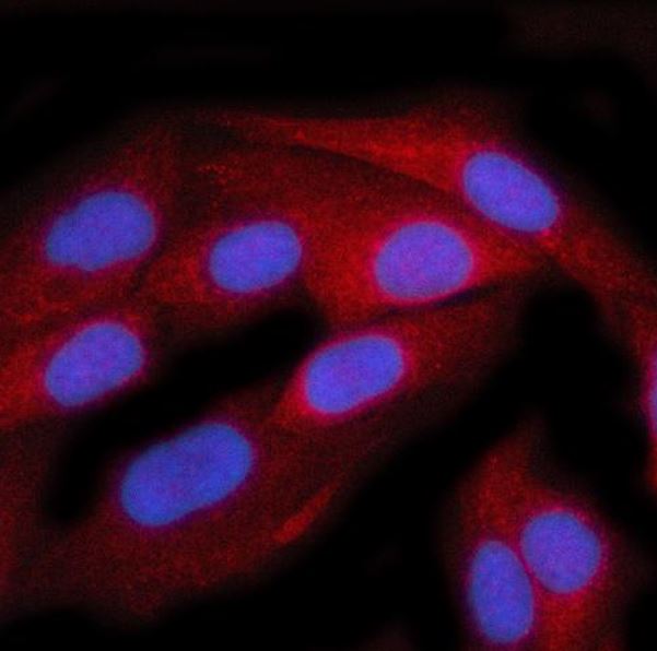 Immunofluorescence: Hela stained with ARG45429 anti-TTC38 antibody at 5 μg/ml dilution.