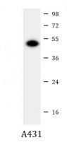 Western blot: 20 µg of A431 cell lysate stained with ARG55863 anti-TUFM antibody at 1:1000 dilution.