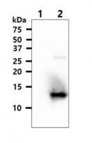 Western blot: 50 ng of 1) Recombinant Human Thioredoxin1 protein, and 2) Recombinant Human Thioredoxin2 protein stained with ARG57169 anti-TXN2 / Thioredoxin 2 antibody [1B1] at 1:1000.