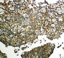 Immunohistochemistry: Paraffin-embedded Human lung cancer tissue stained with ARG58129 anti-TXNRD2 antibody.