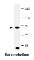 Western blot: 20 µg of Rat cerebellum lysate stained with ARG43393 anti-TrpV1 antibody at 1:2000 dilution.