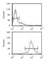 Flow Cytometry: Ramos cells stained with ARG59733 anti-U2AF1 antibody (bottom histogram) or without primary antibody as control (top histogram), followed by incubation with FITC labelled secondary antibody.