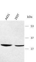 Western blot: A431 and 293T stained with ARG44010 anti-VDAC1 / Porin antibody at 0.5 μg/mL dilution.