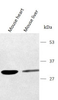 Western blot: Mouse heart and Mouse liver stained with ARG44010 anti-VDAC1 / Porin antibody at 0.5 μg/mL dilution.