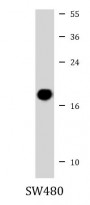 Western blot: 35 µg of SW480 cell lysate stained with ARG55831 anti-Visinin like 1 antibody at 1:1000 dilution.