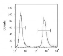 Flow Cytometry: HeLa cells stained with ARG55013 anti-WDR3 antibody (right histogram) or without primary antibody control (left histogram), followed by incubation with FITC labelled secondary antibody.