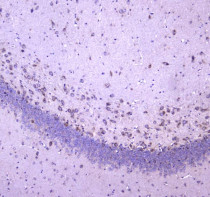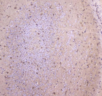 Immunohistochemistry: Paraffin-embedded Mouse brain tissue. Antigen Retrieval: Heat mediation was performed in Citrate buffer (pH 6.0) for 20 min. The tissue section was blocked with 10% goat serum. The tissue section was then stained with ARG43038 anti-WWOX antibody at 1 µg/ml dilution, overnight at 4°C.