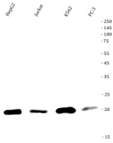 Western blot: HepG2, Jurkat, K562, and PC-3 stained with ARG45210 anti-XTP3TPA antibody at 0.5 μg/ml dilution.