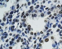 Immunohistochemistry: Paraffin-embedded Human lung tissue stained with ARG41259 anti-ZNF264 antibody at 4 - 8 µg/ml dilution.