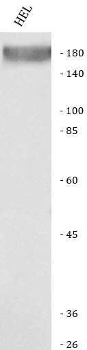 Western blot: HEL stained with ARG45810 anti-ZNF609 antibody at 0.5 μg/ml dilution.