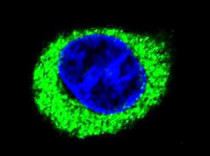Immunofluorescence: 293 cells stained with ARG55133 anti-alpha amylase 2B antibody (green). DAPI (blue) for nuclear staining.