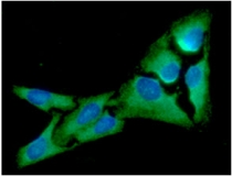 Immunofluorescence: HeLa cells line stained with ARG57111 anti-eIF2 alpha antibody [5E10] at 1:100 (Green).