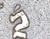 Immunohistochemistry: Paraffin-embedded Human breast cancer tissue. Antigen Retrieval: Heat mediation was performed in EDTA buffer (pH 8.0). The tissue section was blocked with 10% goat serum. The tissue section was then stained with ARG42704 anti-eIF2B alpha antibody at 2 µg/ml dilution, overnight at 4°C.