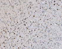 Immunohistochemistry: Paraffin-embedded Rat brain tissue. Antigen Retrieval: Heat mediation was performed in EDTA buffer (pH 8.0). The tissue section was blocked with 10% goat serum. The tissue section was then stained with ARG42704 anti-eIF2B alpha antibody at 2 µg/ml dilution, overnight at 4°C.