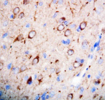 Immunohistochemistry: Paraffin-embedded Rat brain tissue stained with ARG40695 anti-nNOS antibody.
