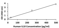 ARG83516 Human Th1/Th2/Th17/Treg Multiplex ELISA Kit (IFN gamma, IL2, IL4, IL10, IL13, IL17, IL22, TNF alpha) results of a typical standard for Human IL10 run with optical density reading at 450 nm.