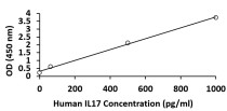 ARG83516 Human Th1/Th2/Th17/Treg Multiplex ELISA Kit (IFN gamma, IL2, IL4, IL10, IL13, IL17, IL22, TNF alpha) results of a typical standard for Human IL17 run with optical density reading at 450 nm.