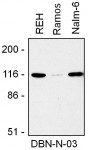 • Specificity: The clone DBN-N-03 recognizes drebrin, an approximately 100-125 kDa regulator of actin cytoskeleton.