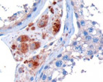 • Specificity: The clone WM53 reacts with CD33, a 67 kDa type I transmembrane glycoprotein (immunoglobulin superfamily) expressed on myeloid progenitors, monocytes, granulocytes, dendritic cells and mast cells; it is absent on platelets, lymphocytes, erythrocytes and hematopoietic stem cells.