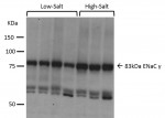 • Specificity: Detects ~97kDa, non-glycosylated version at 68kDa. Other minor bands associated with hNIS at 160kDa, and degradation products at ~30 kDa, and ~15kDa.