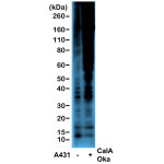 • Specificity: This antibody reacts to threonine-phosphorylated proteins. No cross reactivity with nonphosphorylated threonine, phosphoserine, and phosphotyrosine. It shows slight cross-reactivity with a few phospho-serine-containing peptides.