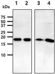 • Specificity: This antibody reacts to Histone H2AZ protein, independent of post-translational modifications. No cross reactivity with other histone proteins.